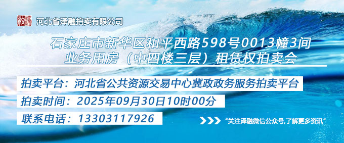 - 石家莊市新華區和平西路598號0013幢3間業務用房(中四樓三層)租賃權拍賣公告20250930